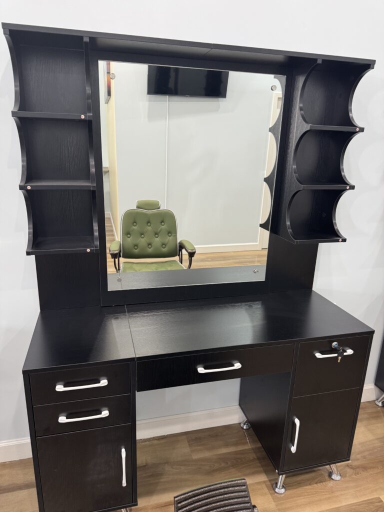 • Individual Fully furnished barber stations (Hydraulic barber chair, cabinet, Full mirror, storage, electrical access, lighting )