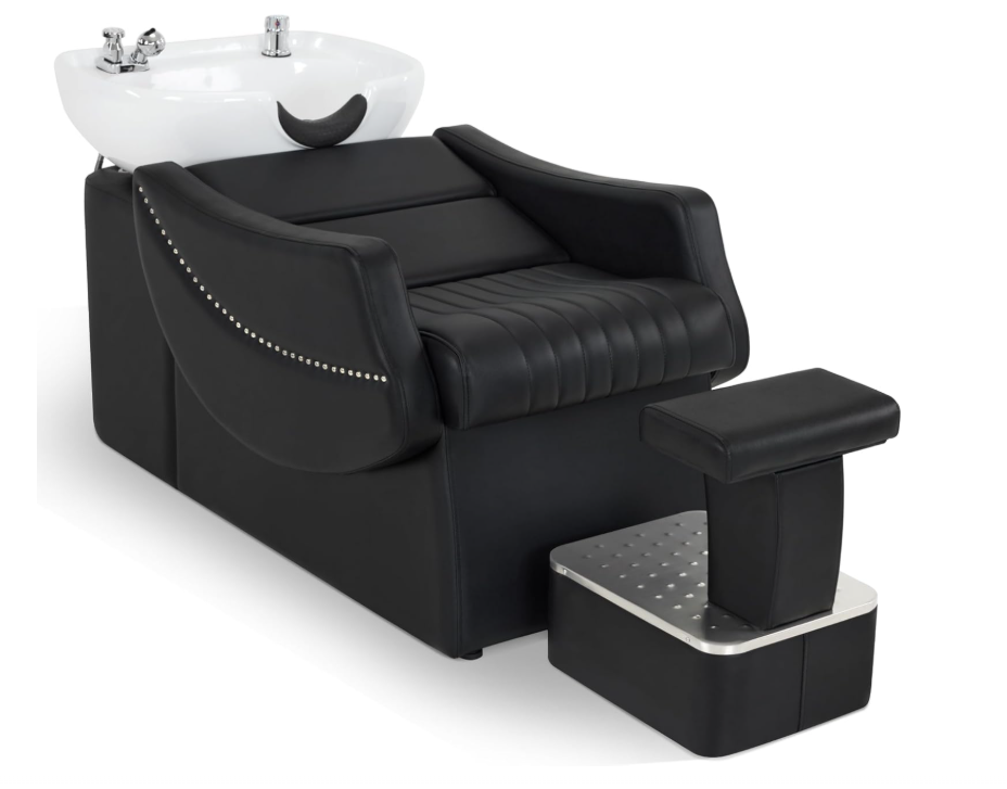Fully equipped Shampoo Backwash Station Leather Chair, Ceramic Shampoo Bowl and Reclining Chair Set with Independent Foot Rest